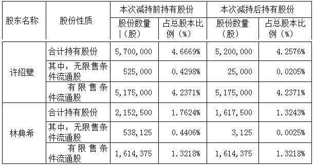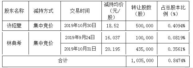 近日,公司收到股東許紹壁、林典希出具的《關于減持股份進展情況的告知函》,截至本公告披露日,股東許紹壁、林典希股份減持數量已過半。根據《深圳證券交易所中小板上市公司規范運作指引》、《上市公司股東、董監高減持股份的若干規定》、《深圳證券交易所上市公司股東及董事、監事、高級管理人員減持股份實施細則》等規定,現將有關情況公告如下: