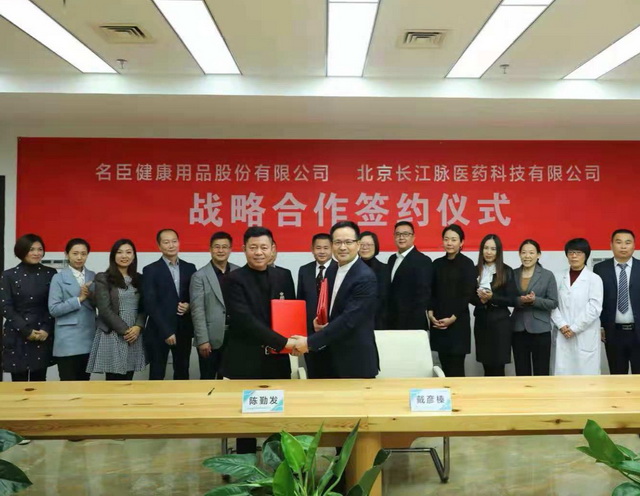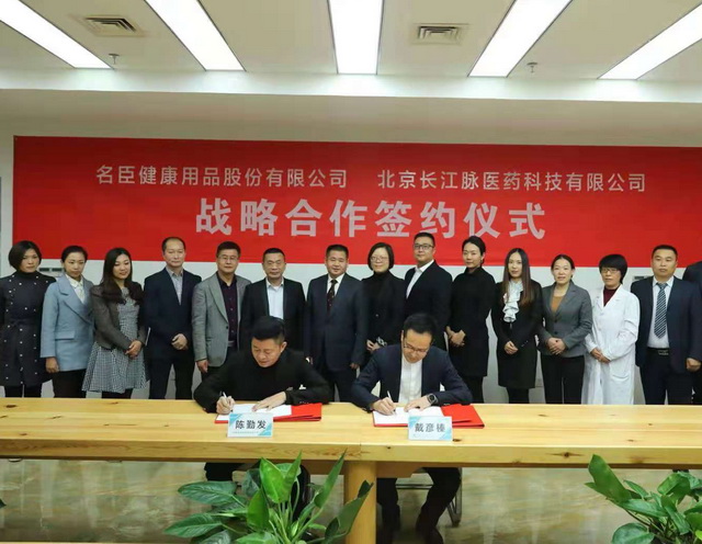 經(jīng)過(guò)一段時(shí)間的持續(xù)接觸及深度溝通、研討,名臣健康用品股份有限公司(以下簡(jiǎn)稱“名臣健康”)與北京長(zhǎng)江脈醫(yī)藥科技有限責(zé)任公司(以下簡(jiǎn)稱“長(zhǎng)江脈”)簽署了《戰(zhàn)略合作框架協(xié)議》。雙方于2018年10月25日在北京長(zhǎng)江脈公司總部舉行了簡(jiǎn)單而隆重的簽約儀式。