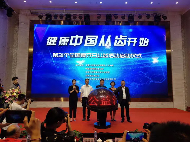 為提高群眾口腔健康意識,營造有利于口腔健康的良好社會氛圍,9月20日,由中國口腔清潔護理用品工業協會、中國牙病防治基金會、中國口腔健康科普公益聯盟、湖南省慈善總會、湖南綠之韻健康科技發展有限公司及中國口腔健康科普公益聯盟成員單位共同主辦的“健康中國?從齒開始——第31個全國愛牙日公益活動啟動儀式”在湖南長沙隆重舉行。