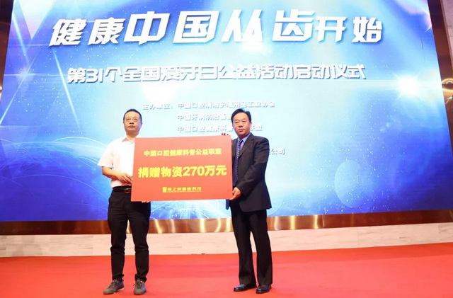 本次愛牙日公益活動,中國口腔健康科普公益聯盟單位共向湖南省慈善總會捐贈價值270萬元的口腔護理用品。