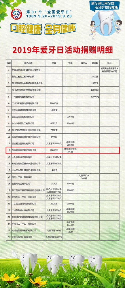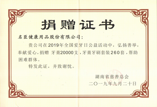 口腔健康,是人類健康的重要部分和前提條件。沒有全民的健康,就沒有全民的小康。一直以來,名臣健康在業務不斷發展、事業不斷進步的同時,不忘回饋社會,關愛民生,善盡企業社會責任,為構建和諧社會貢獻應盡的力量。