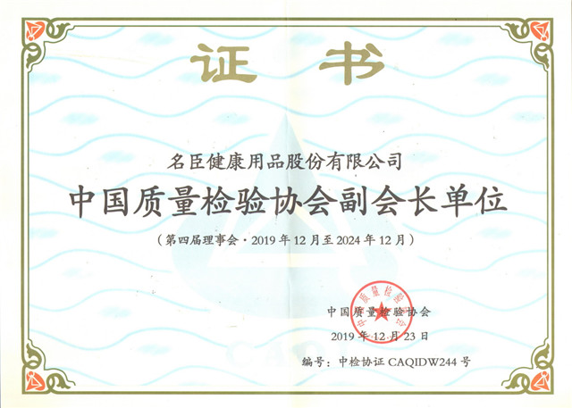 名臣健康用品股份有限公司董事長陳勤發在本次會議上當選中國質量檢驗協會第四屆理事會副會長。