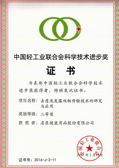 20172月公司獲中國輕工業聯合會科學技術進步獎二等獎