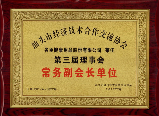 名臣健康用品股份有限公司作為國內(nèi)個(gè)人健康護(hù)理用品領(lǐng)域的國家名牌產(chǎn)品企業(yè)和地方骨干企業(yè),在致力推動(dòng)公司業(yè)務(wù)持續(xù)、穩(wěn)步、健康發(fā)展的同時(shí),積極參與汕頭經(jīng)濟(jì)技術(shù)合作交流協(xié)會(huì)等地方和行業(yè)協(xié)會(huì)的活動(dòng),為辦好協(xié)會(huì),發(fā)揮協(xié)會(huì)橋梁紐帶作用,推動(dòng)會(huì)員企業(yè)發(fā)展、擴(kuò)大協(xié)會(huì)社會(huì)影響力出謀獻(xiàn)策,發(fā)揮了積極作用。名臣健康將進(jìn)一步加強(qiáng)與會(huì)員企業(yè)的經(jīng)濟(jì)、技術(shù)、信息和管理交流,務(wù)實(shí)開展合作,同時(shí)通過合作交流,取長補(bǔ)短,整合資源,實(shí)現(xiàn)會(huì)員企業(yè)管理水平的共同提升,共同進(jìn)步,推動(dòng)汕頭經(jīng)濟(jì)的發(fā)展。