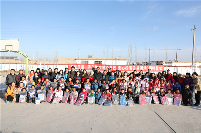 11月16日,名臣健康用品股份有限公司派出代表不遠千里,隨中國香化協會走進西北戈壁,來到甘肅河西走廊西端,古絲綢之路的商賈重鎮瓜州,參加由中國香精香料化妝品工業協會發起組織的愛心公益活動,為山區孩子捐贈愛心書包、校服和文具,傳遞名臣人拳拳愛心。
