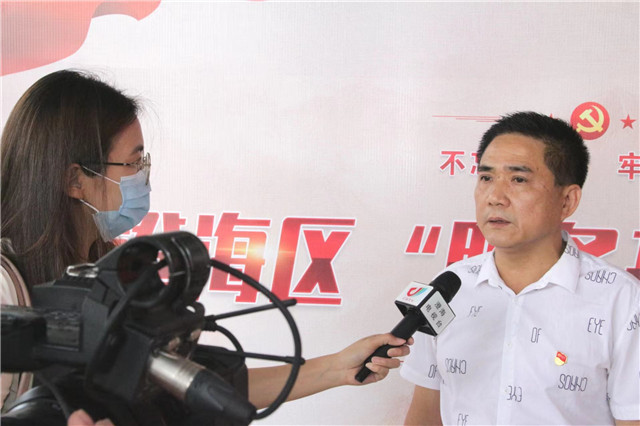 公司黨支部書記王曙光在主題黨日活動(dòng)現(xiàn)場(chǎng)接受新聞媒體采訪。