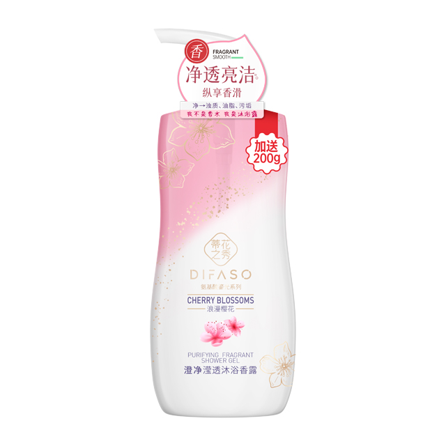 氨基酸親膚配方,泡沫綿密易沖洗,浴后皮膚清爽不黏膩。幫助清潔皮膚油脂及污垢,皮膚沁潤凈透。花植凝萃香氛,悠然恬淡,清新香氣在皮膚間縈繞,暢享舒爽感受。